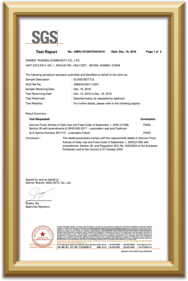 The1-ojiPartija gauta KinijojeLFGBSertifikatas į2004 -